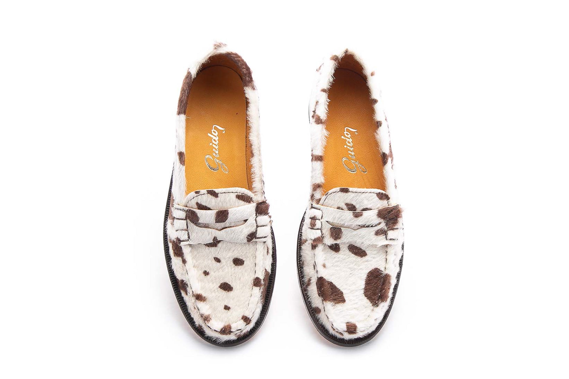 Art. 5379 – Presentamos este audaz mocasín GUIDO, elaborado artesanalmente con 100% cuero vacuno. Este diseño de distingue por su elegante confección de cuero con pelo que combina estilo y originalidad añadendole un toque de sofisticación a tu estilo. Toda su elaboración y terminaciones son a mano estableciendo un producto único en calidad y confort. Su base de suela natural presenta nuestro clásico logo Guido grabado a fuego.