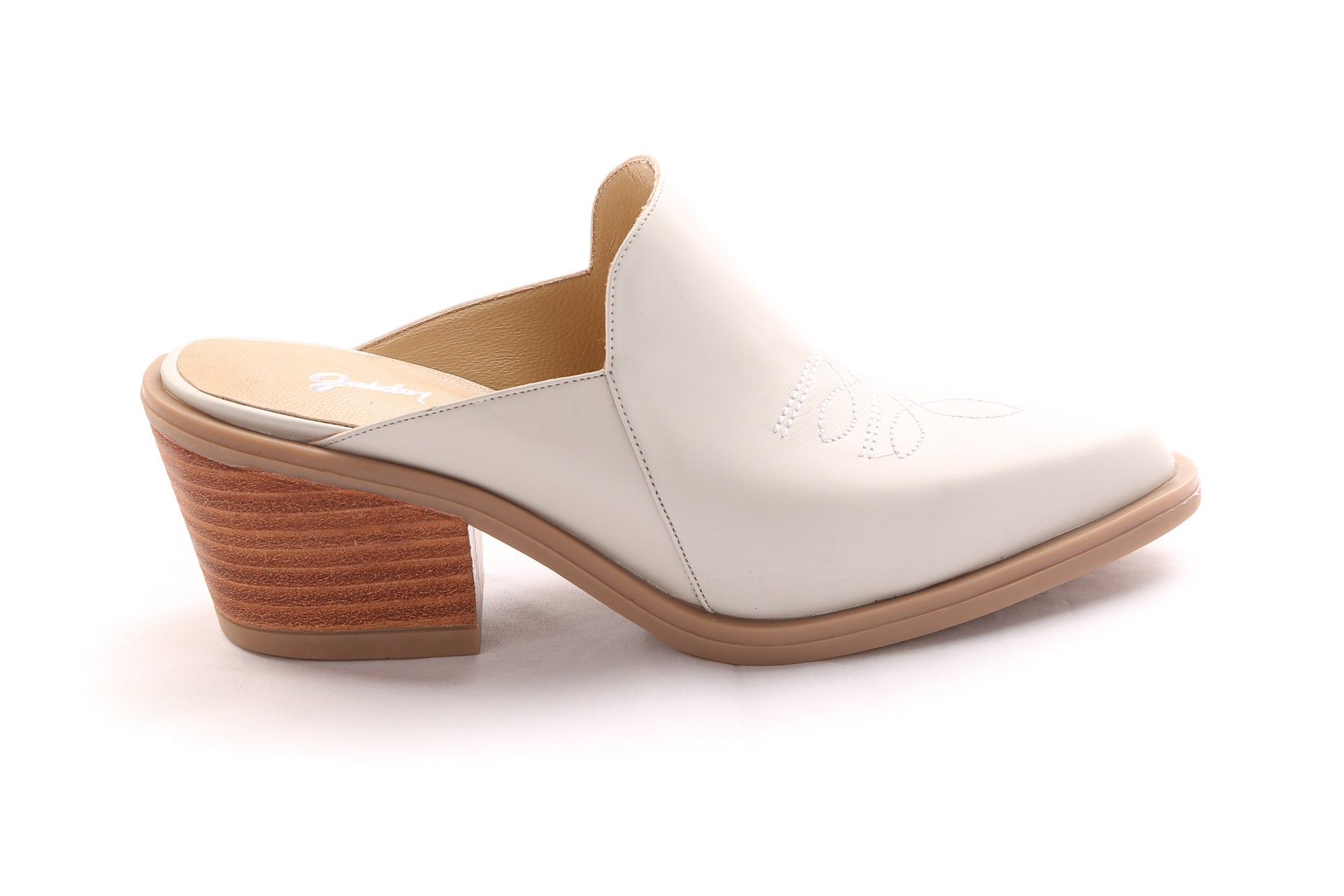 Art. 19402 - Introducing the Belen Mule, an exceptional piece handcrafted with 100% high-quality leather. Crafted to blend style and comfort, this mule features a medium heel and a rubber sole that ensures a secure step. Designed with a unique embroidery, the Belen shoe enhances both elegance and comfort by blending cowhide and buffalo leathers, staying true to GUIDO´s style.