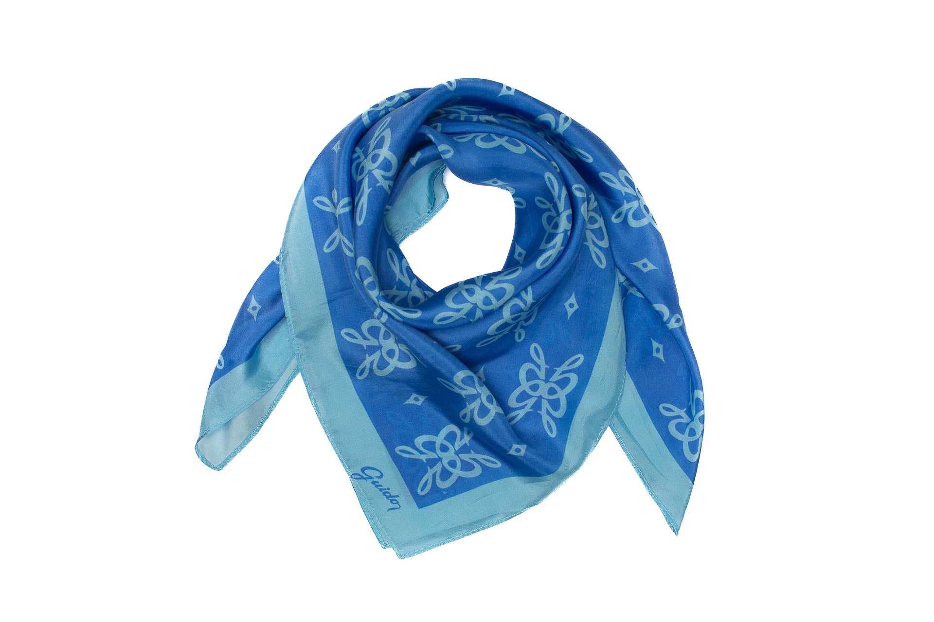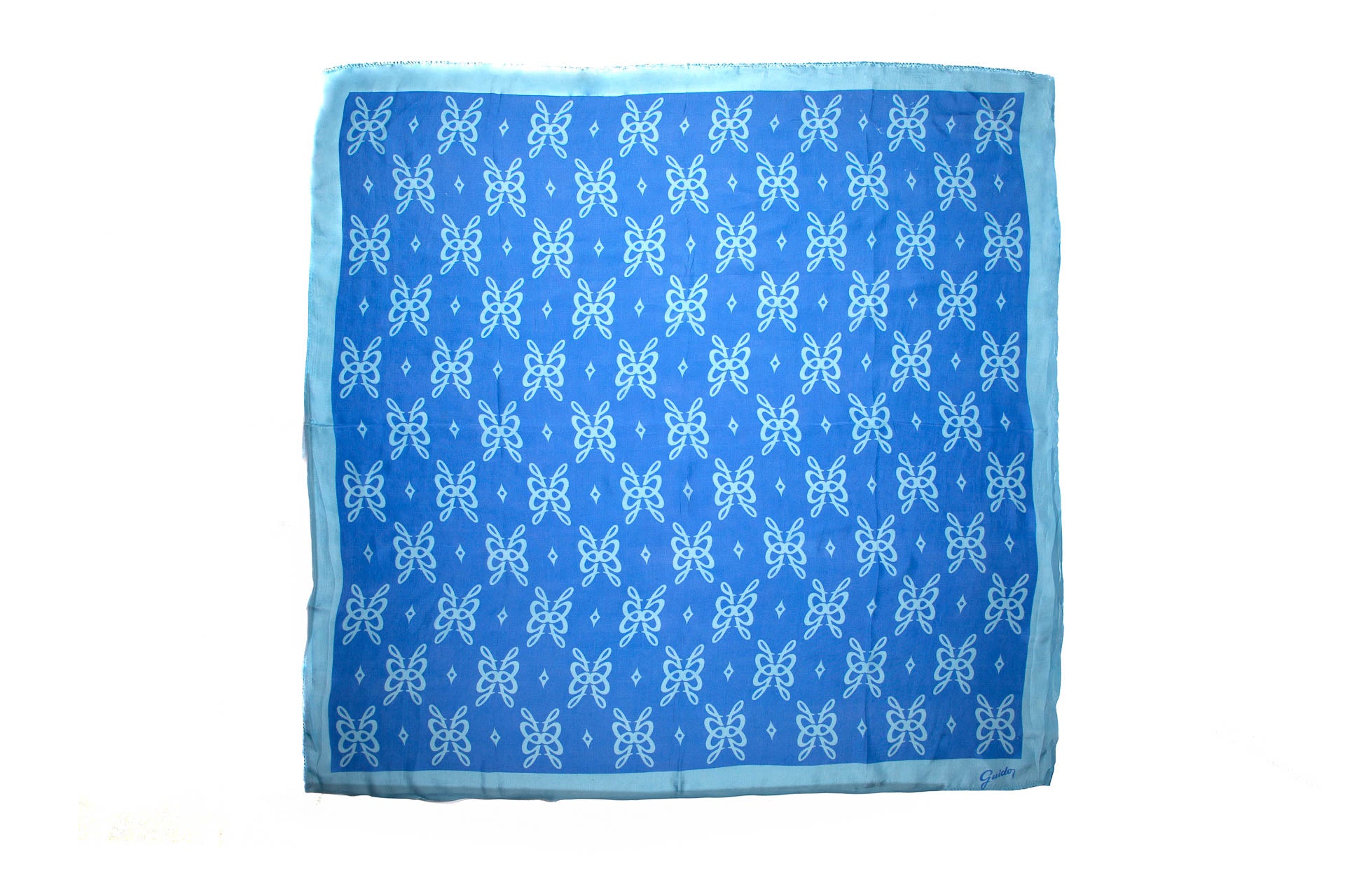 Art. PG80 - Discover our GUIDO Butterfly Scarf, a piece that embodies creativity and sophistication. Crafted from the highest quality silk, the design elements are inspired by the butterfly, with GUIDO's iconic "G" forming its shape. This is the perfect accessory to complete any outfit, day or night.