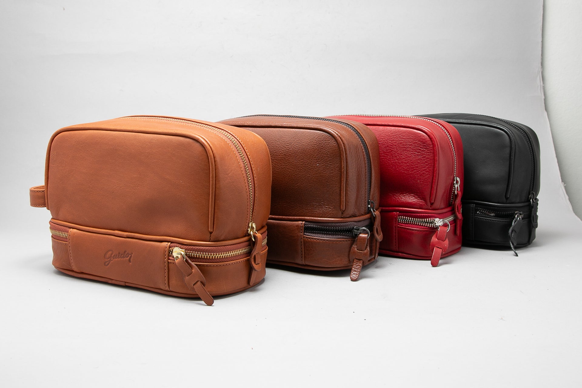Our GUIDO travel bag is the beauty case for the traveler. Suitable for essentials from lotions and perfumes to any other personal care product. Made with 100% leather, two high-quality zippers, and strong waterproof seams. It features two compartments to separate products that may damage each other, such as watches from razors. Available in various colors.