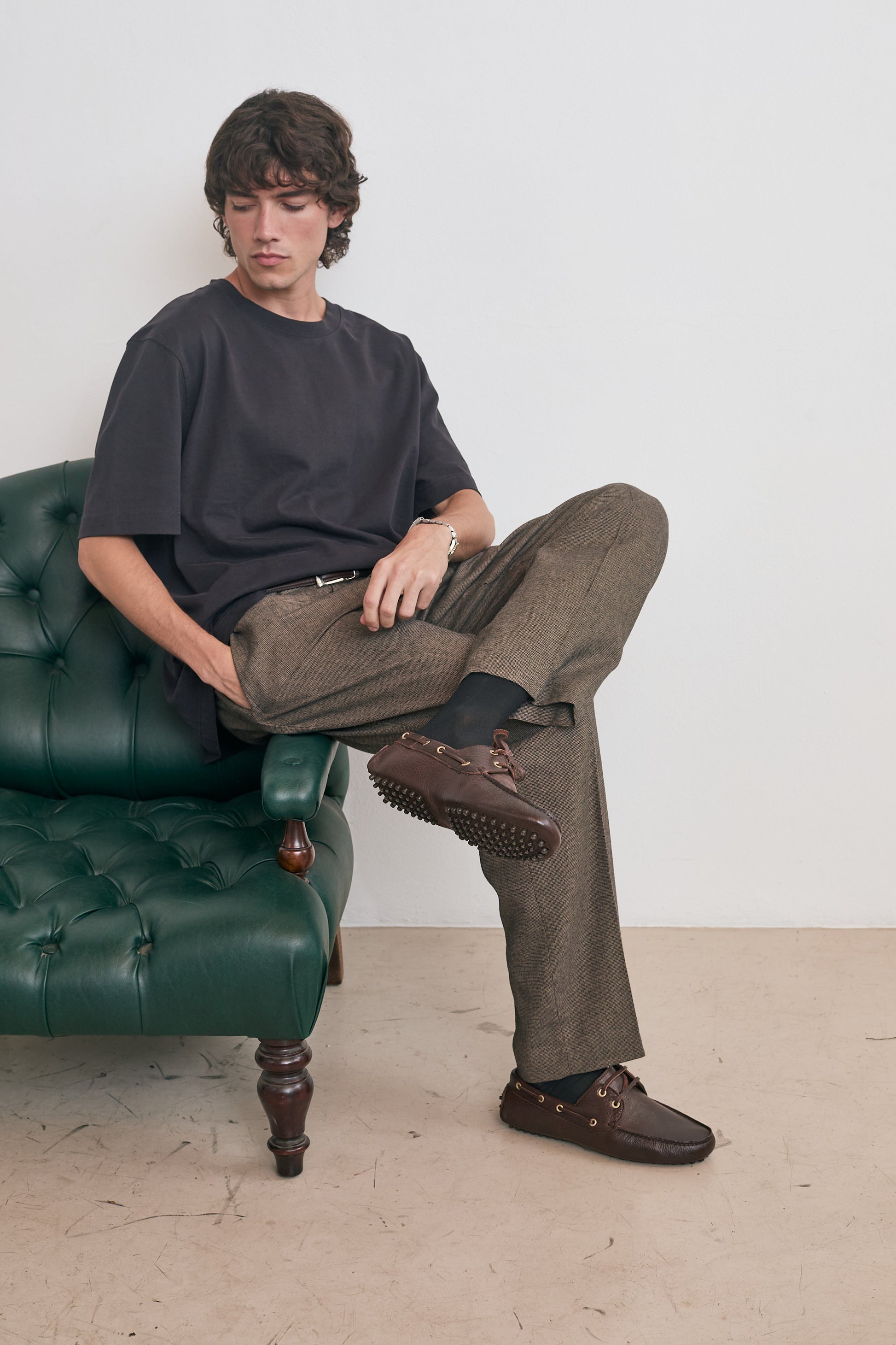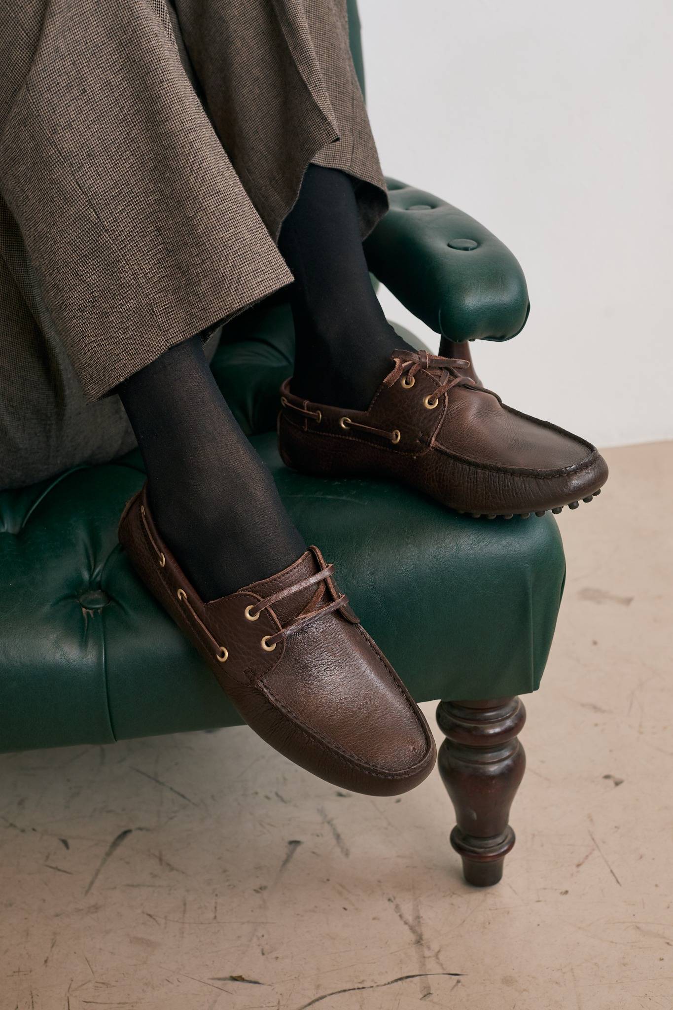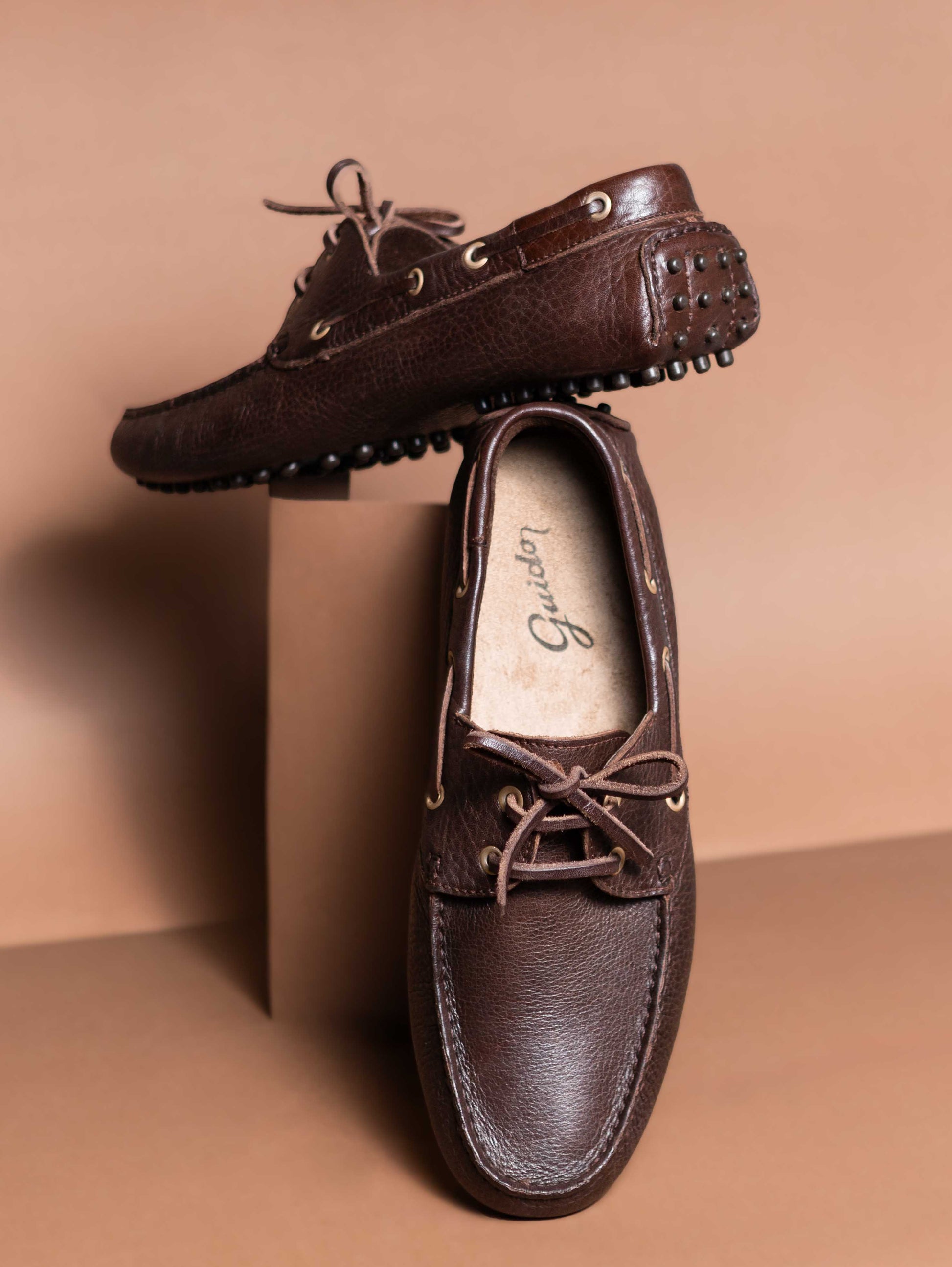Art. 2450 – Urban Driver Shoe handcrafted from 100% cowhide leather. With its comfortable, flexible design and a chocolate-colored rubber sole, it delivers an exceptional walking experience.
