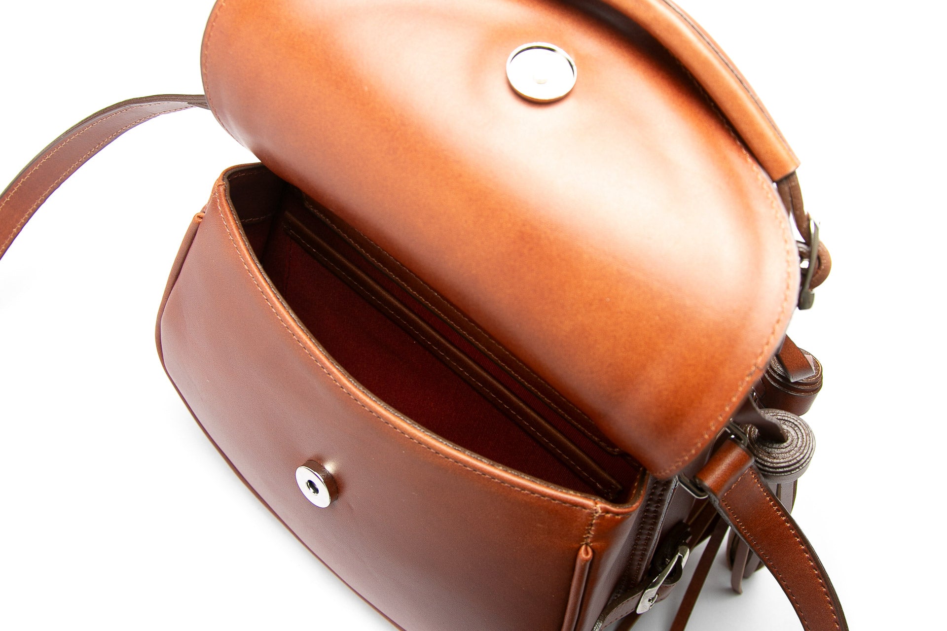 - Two leather fringe accents