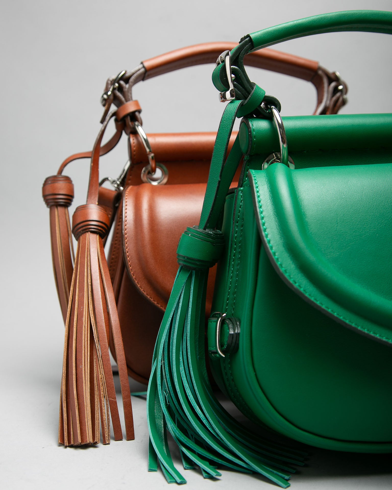 - Two leather fringe accents